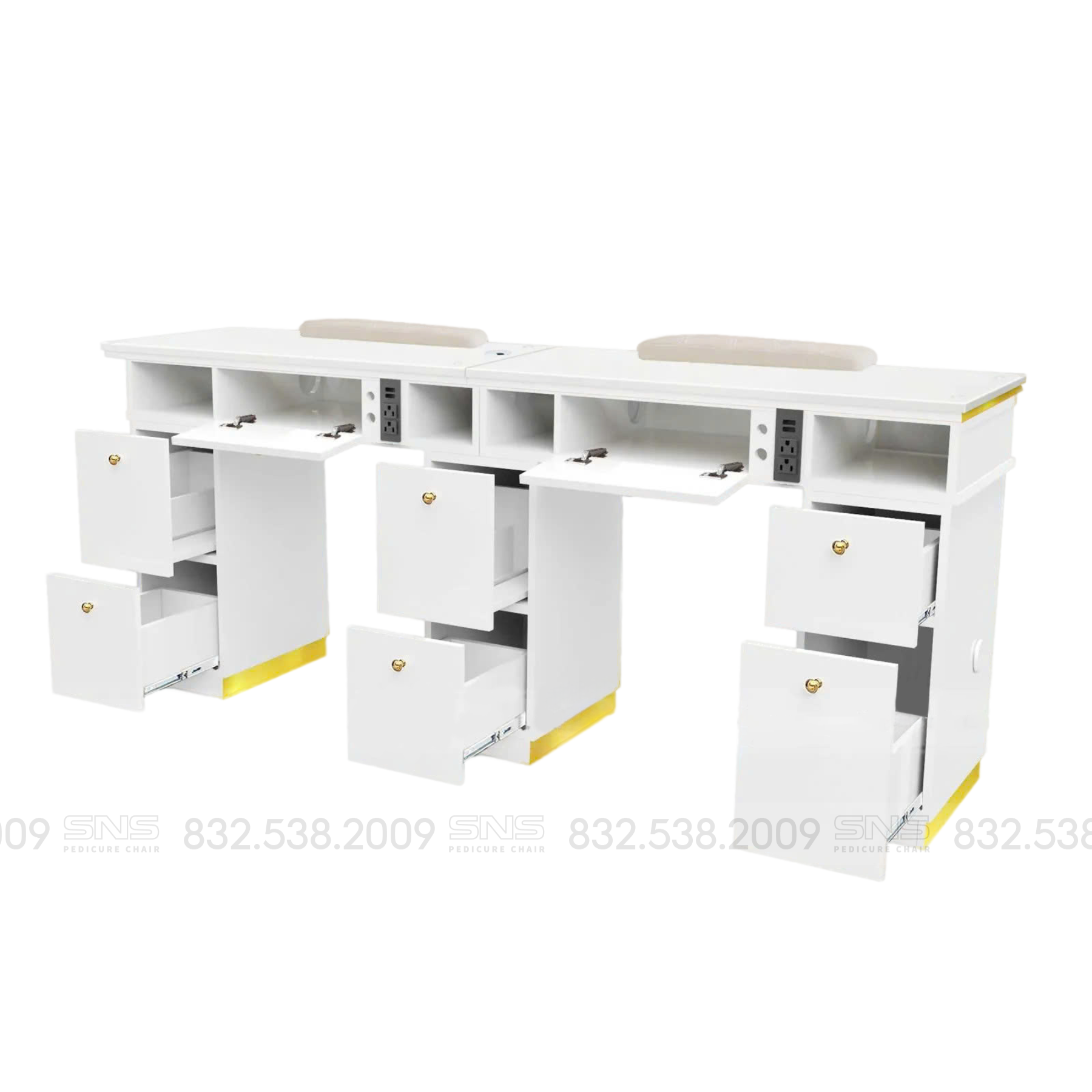 Storage space is often at a premium in salons, which is why the Venice II Double Table comes equipped with multiple drawers. These drawers offer plenty of room for storing files, tools, and supplies, keeping your workstation tidy and efficient. Say goodbye to cluttered counters and hello to a more organized setup.