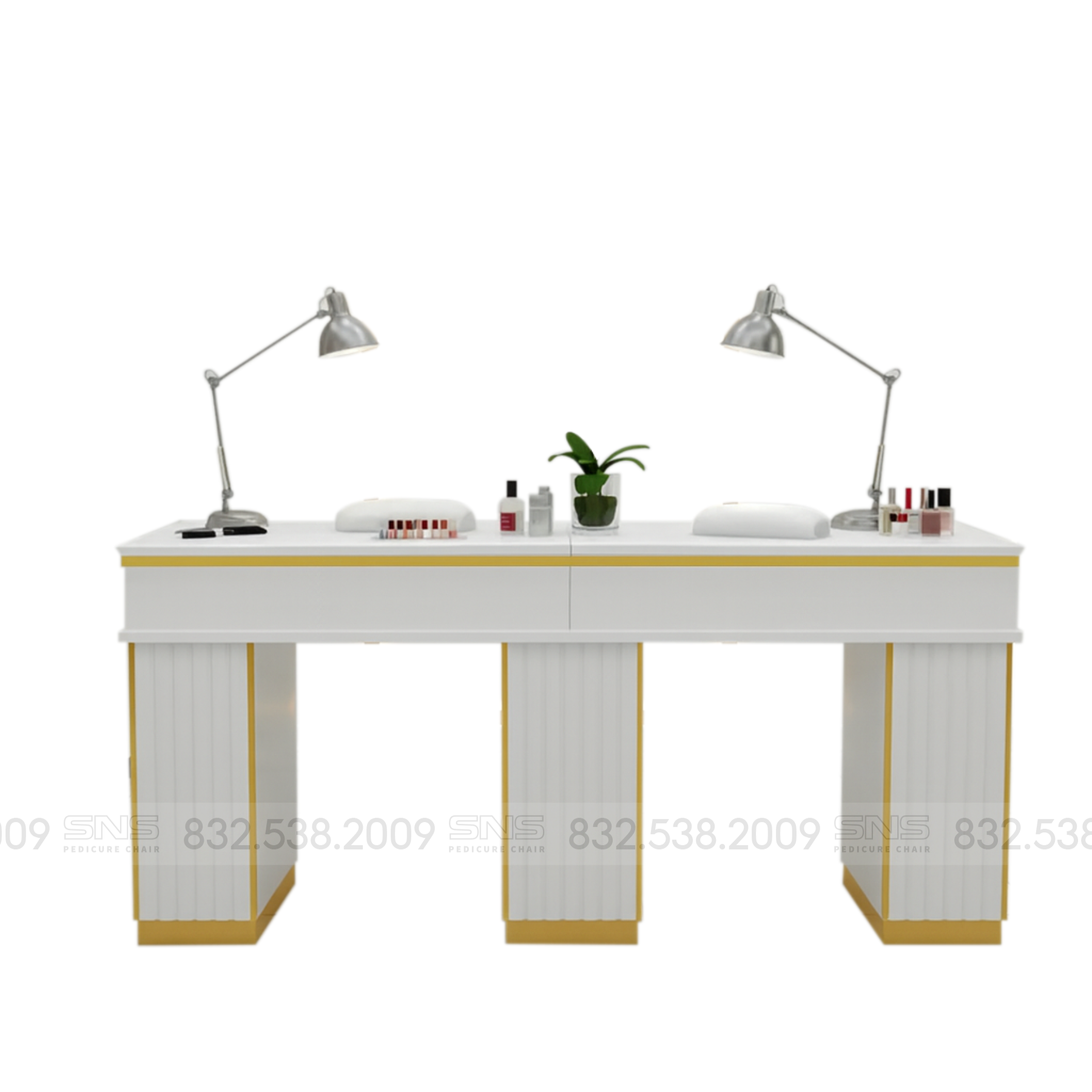 Stay organized and efficient with the built-in bottle organizer, a clever addition to the Venice II Double Table. This compartment keeps your nail polishes, removers, and tools neatly stored and easily accessible, minimizing downtime during services. It’s a small detail that makes a big difference in maintaining a professional and streamlined workflow.