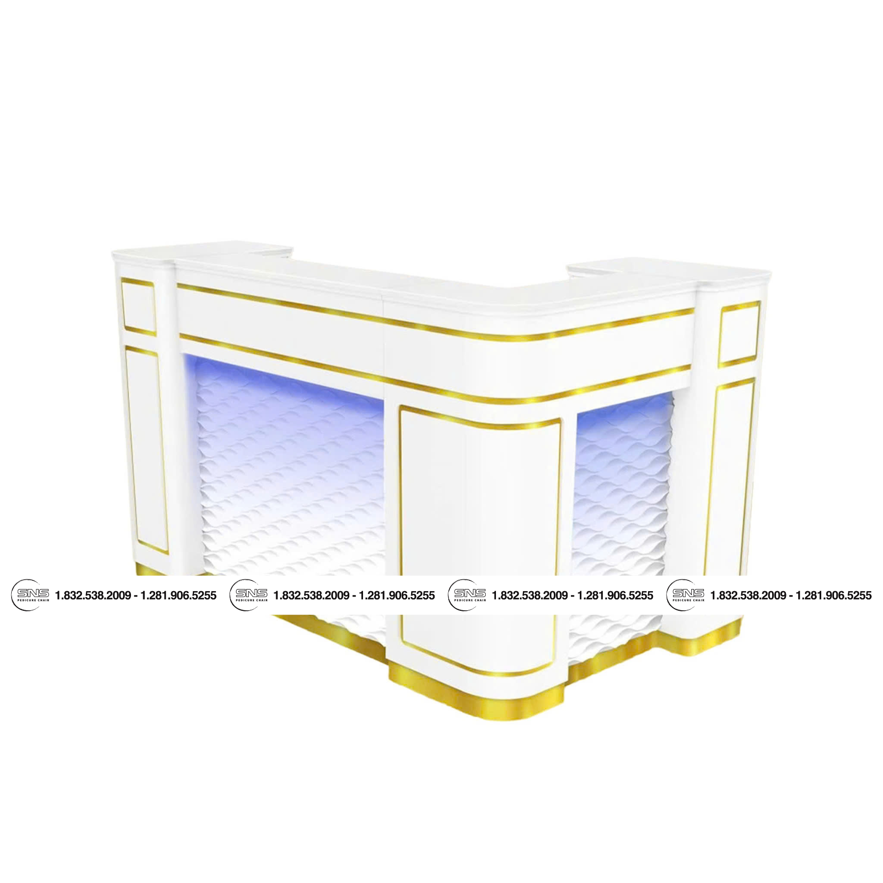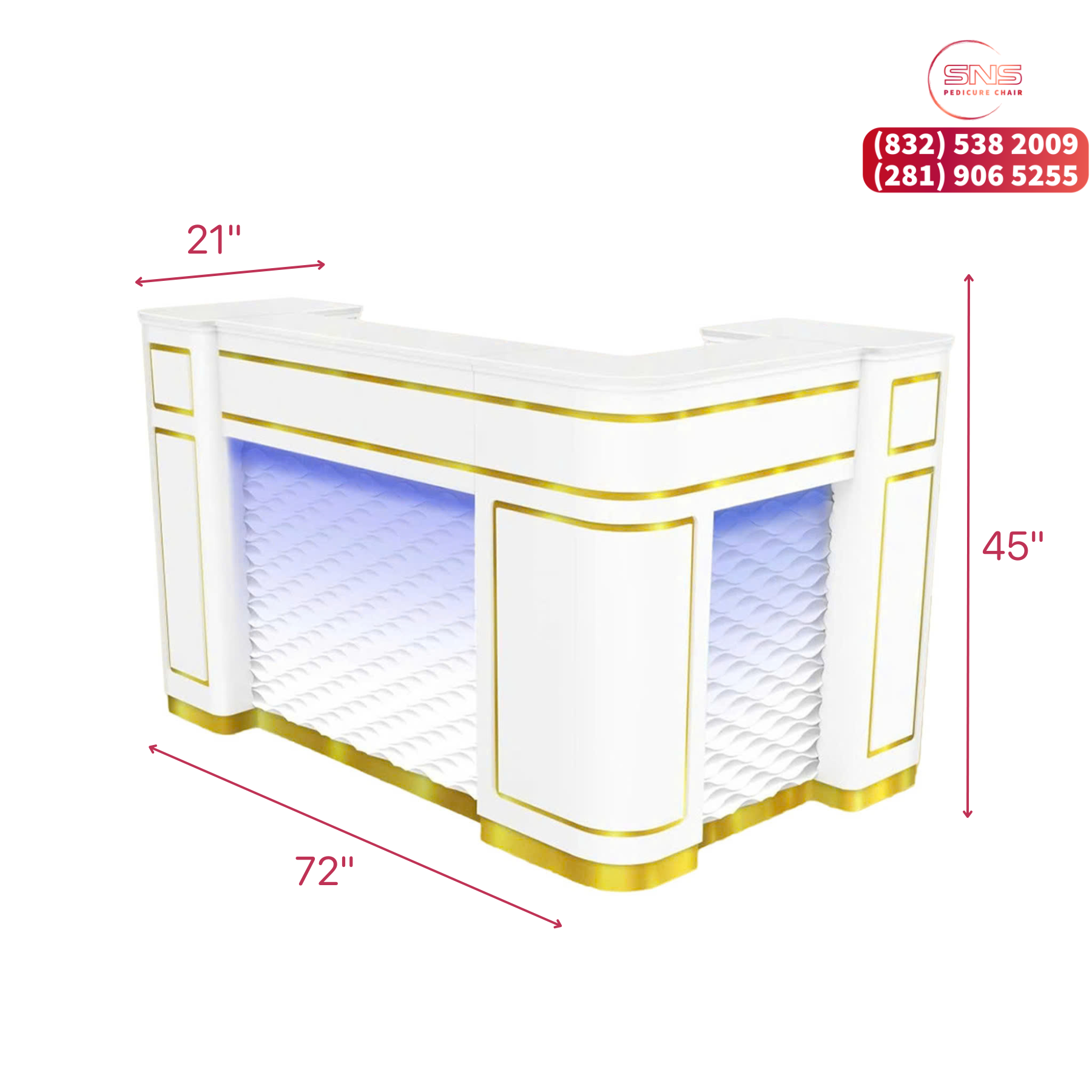 Reception L72 is a perfect choice for any salon. It features a nail salon reception with bright and vibrant LED lighting and 3D pattern in front . Crafted with quality materials, it offers both style and durability. Elevate your salon with this modern, yet sophisticated, design.